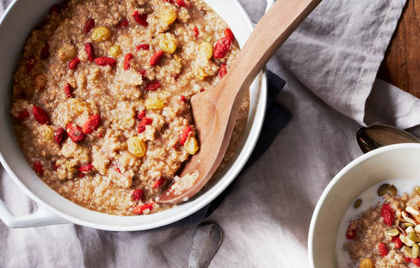 Swap in chopped dried apricots for the dried fruit, or top with grated apple in fall, fresh peaches in summer.