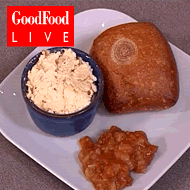 7. Serve the potted cheese with warm tomato chutney and hot bread rolls.